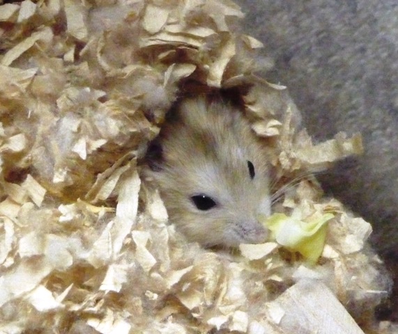 昨年、息子の誕生日に買ったセキセイインコがわが家にいましたが、2週間前の日曜日、父が鳥かごの掃除をしているときに逃げられてしまいました窓は10cmも空いておらず、風も強く吹き込んでいたので逃げられないだろうと思ったのが間違いでした掃除機をかけたときには、すぐ側のスチールラックに留まっていたのはずがバンっという音がしたので壁にぶつかったのかと思ったのですが気づいたときにはセキセイインコの姿は部屋にはなく・・・・・ラックの後ろや別の部屋に逃げたかと家中を探しましたが鳴き声さえも聞こえません。いつもはうるさいぐらい鳴いているのにし~~んと静まり返ってますやはりインコは逃げていってしまったようで・・・出かけていた息子に事情を話しましたが、大事に飼っていたインコです、父の見えないところで泣いていました。数日後、インコの代わりにと買いに行ったハムスターは生まれて2ヶ月の割に小さく、3日後に★になりました。ショックが隠せない息子のために、父は内緒で新しいハムスター2匹を購入習い事から帰ってきた息子は、空のはずのケース内に動くモノを発見「何?何か動いてる!・・・・どう~したのコレ?!」と少々興奮気味^^;父が事情を説明するととても喜んで手のひらに乗せてました。★になったハムスターより1ヶ月も遅く生まれたのに身体の大きさは同じくらいです。とても元気で餌食いも良く、いつもくっついてる仲の良い2匹です。金ちゃん(由来は判りません^^;)銀ちゃん(これも由来が判りません^^;)先日ショップで見かけたジャクソンペアが忘れられなくてとうとうわが家に引っ越しさせちゃいました(笑)やはり角系は見応えがあってカッコイイです♀はまだ警戒心が強いのでなかなかシャッターチャンスがありませんが、♂は慣れてきたので就寝中もパチリこの3本の角はいつ見ても威厳があります