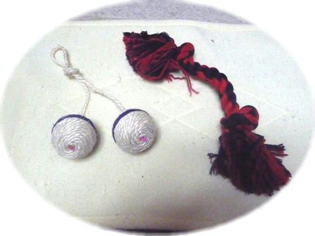 昨日百均のペット用品売場で見つけました右側のは一般的なロープタイプのもの左側は・・・・ハイッ!猫のおもちゃです玉の下に羽がついていたのですが、食べちゃいそうなのでちぎり取りました二つ並べて置いたのですが、やはり飛びついたのは猫のおもちゃ^^;確かにコロコロと動いて面白いかもしれませんが、何で猫用なの?よろしくお願いしますにほんブログ村