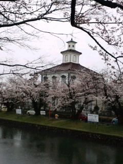 あいにくの雨です さくら祭りをしてました 五分咲き位かな これから鶴岡公園に向かいます