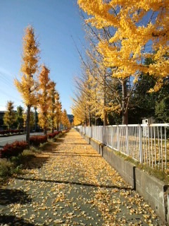 平日の二日間を職員研修に費やし。。帰ってきたら仕事の山。。。旅行疲れより精神的にへとへとに疲れました。。しなくちゃいけないことはいっぱい有るのに。。頭が回らない。。。。ミスらないようにパリっとしなくっちゃね。こんなに疲れているのに週末は東京です。。しかも、日帰り。。。。。始発で出かけて最終で帰ってきます。目的はロボット展を見てくること。。三男のお供です。。(それが終わればフリーです。。どこいこっかな。。。)おのぼりさんの私は真っ直ぐたどり着けるのか今から心配です今日は新幹線のチケットを取りに行き実家でご飯を食べてくる予定です。今週は色々ありすぎです。。あっ。。血圧の薬なくなっちゃったんだっけ。。医者に行く暇もなくて。。。ちょっとくらい忘れても大丈夫だよね。。このまま、薬のまなくていいんじゃないかな。。。今は元気いっっぱいだから。。きっと大丈夫でしょうこの銀杏の木の写真のおかげで益々元気いっぱいになったベルスノーです
