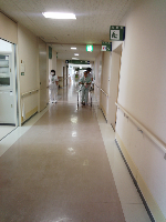 今日は廊下を歩行器を使って歩きました ゆっくりゆっくり進んで行こうね