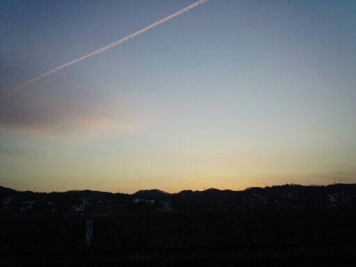 夕焼けきれいですね 飛行機雲 いいなぁ どこか遠くに行きたいなぁ なんて見とれてると 暗くなっちゃう 急げ急げ(^_^)ゞ