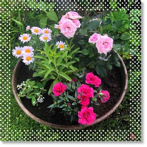 ミニバラ、ミニカーネーション(ナデシコ?)、マーガレット
