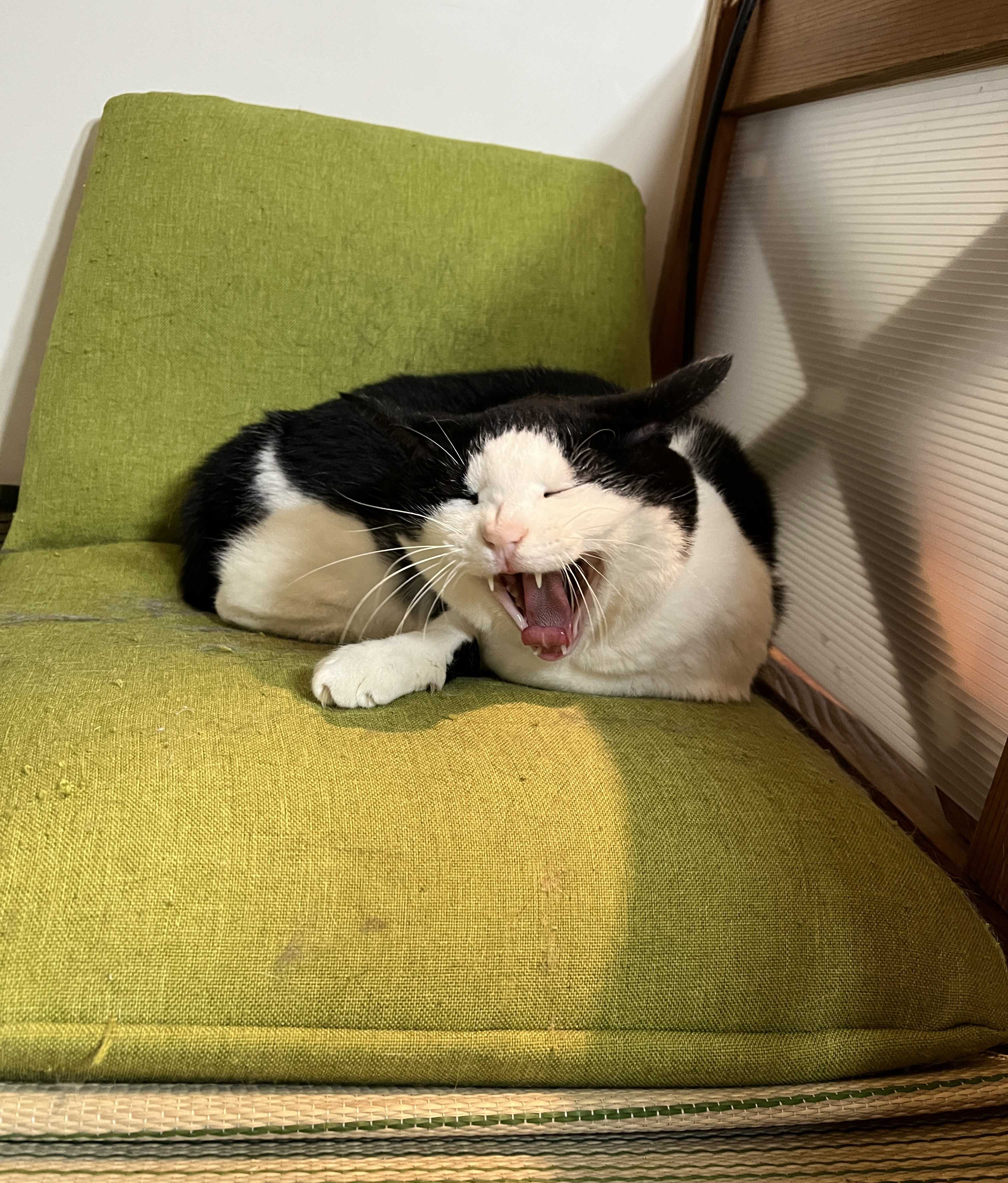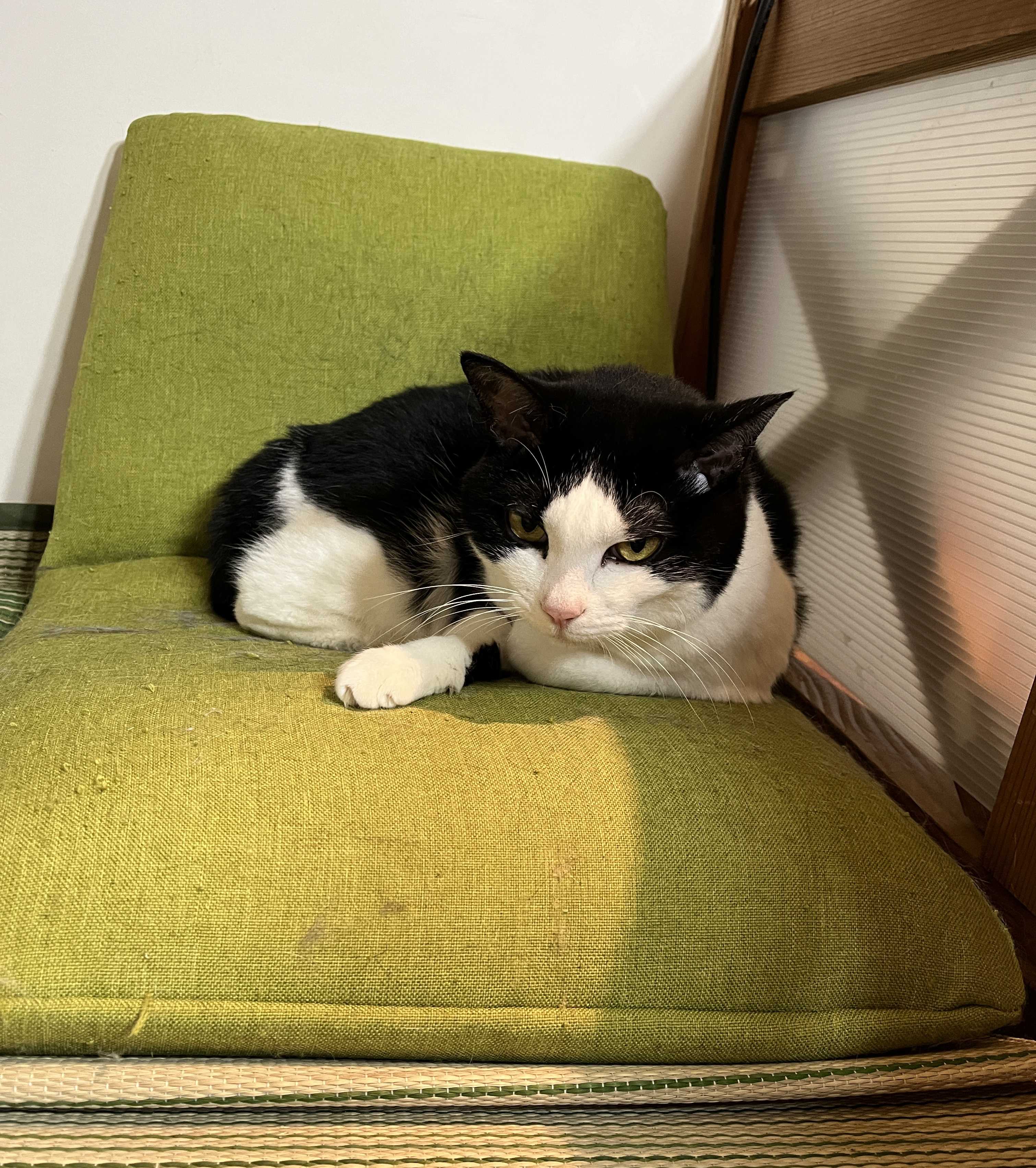 元々、私用に買った座椅子だったけれど、猫たちに気に入られて何年経ったか覚えてない。