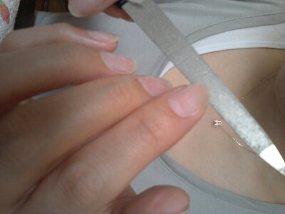 繰り返しますが、私は不器用&ただの素人ですので、実際にジェルをする際には説明書をしっかり読んでくださいね。ジェルネイルセットを買おうかどうしようかと迷っている段階の人の参考になればと思って書いてますでは、実際にネイルをしていきますシャイニージェルの詳しい手順は、こちらのHPに詳しく書いていますので、素人目線で感じたことを(雑記です)書かせていただきます。まずは爪の形を整えます色々な形がありますが、私は手が綺麗に見えるのでオーバル(丸みがあるかたち)が好きです。ただタウンドオフ(四角いかたち)のほうが強度は強いし、整え方は簡単だと思います。ジェルは3~4週間はもちますので、伸ばしていたらもったいないと感じると思うのですが、最初は少し短めにととのえておきます。続いて、甘皮処理ストーンプッシャーでくるくると処理していきます。種類はいろいろありますが、ストーンのものが私個人はおすすめです。その際、こちらのキューティクルリムーバーを使えば面白いほどぽろぽろ落ちます。あかすりみたい。 爪の表面に傷を入れる付属のファイルでどうぞ。私はセルフジェルネイルの知識があまりないまま使っていたとき、すぐにペロっとリフト(浮いてきていた)していたこともあって、しっかり削らないといけないと勘違いし、爪がびっくりするくらいぺらっぺらになったことがあります。これ、要注意です!イメージとしては、さっさっと軽く表面を削る程度。言葉でイメージしにくい方はユーチューブなどでネイリストさんが動画をあげてくれているので、そちらで確認してくださいね。続いて ダストをとり、ジェルクリーナーで拭き取るわたしは100均のお店で購入した爪垢汚れとり?(なんていうんでしょう)のようなものを使い、振り落としています。クリーナーで拭き取ります。専用のワイプもセットについていますが、なくなれば、キッチンペーパーで代用可能です。キッチンペーパー、けっこうネイル中は使えるんですよ!これで下地が完成です。(自爪、弱ってますw)