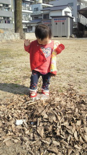 今日は、とってもいいお天気ポカポカ陽気だったので、近くのお饅頭屋さんに行くついでに、お散歩をしました。久しぶりにお外で遊んだので、大はしゃぎ。せっかく、集めてある落ち葉を、グシャグシャに。。。おいおい、やめてぇ~ひとしきり遊んだところで、おやつは、クリームチーズ入りの回転饅頭。お家のオーブントースターで、表面をカリカリに焼いていただきました。美味しかった、チーズとあずきあんが良くあいます。また、今度買いに行こう。