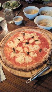 今日は、母に誘われて夕食を食べに行きました。メインをひとつ頼んで、あとサラダ、ご飯スープは、ビュッフェ形式になっているところで、私は、コレピザ マルゲリータを頼みました。結構なボリュームで、一人では無理。みんなで分けて食べました。主人は、ビーフステーキガーリックライス。母は、和風ハンバーグを頼んでましたが、どれも、おいしかったです。ビュッフェなので、食べ過ぎてしまいました。