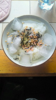 今日も、暑い昼ごはんは、そうめん、ざるそば。。。と冷たいものが続いてますもう、麺類も飽きたので今日は、冷やし茶漬け氷をたっぷり入れて、サラサラといただきましたこれは、おいしいです夏、食欲が落ちてるとき、サラッと入っていいかもやみつきになりそうです今日、お買い物の帰り車のエンジン警告ランプが点灯して、消えません見てもらわなければ、日曜日は海に行けませんまた、余計な出費にならなければいいけど。。。