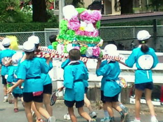 今日は、地蔵祭りで子供神輿と近所の老人保健施設で「地域ふれあいフェスティバル」がありましたお昼から、町内の子ども会で手作りのお神輿を担いで、町内を一周お姉ちゃんが参加してきました老人保健施設のお祭りではお姉ちゃんも浴衣を着せたかったのですが「暑いからイヤ!」と着てくれず下の子だけ、甚平を着せてあげましたくじ引きで貰った、ふうせんで遊んでますホントは、プーさんのぬいぐるみが欲しかったみたいで。。。これ貰ったときはあまりうれしそうではありませんでしたお姉ちゃんは、お友達とお祭りを楽しんだようで親とは別行動。だんだんこうなってくるのですねお祭りには、ゆるきゃらのASO坊健太くんも来てましたホントは、くまモンに会いたかったけど。。。帰りに、近くのお地蔵さんの広場へ行ってみるとビンの中にろうそくを入れた、ランタンを並べてお地蔵さんの顔と、がんばろう日本!のメッセージ町内の皆さんが、一生けんめい火を灯して居られましたなかなか、全部に灯すのは大変そうで暗くなると、もっと綺麗なんでしょうが待たずに、帰ってきました来年は、暗くなってから見に行ってみようかな
