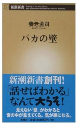 基本的にバカという言葉を連発するセンスは好きでないが、著者が「壁」という言葉で表現しようとする意図は分かった。しかし、「『話せばわかる』なんて大うそ!」という腰巻キャッチコピーは許せない。よくよく見ると、「新潮新書創刊!」とある。なるほど、にわか新書評論家の私は気がつかなかったが、新潮新書というのは、最近2003年にできたブランドだったのだ。この本はそのブランドの第三冊目だった。