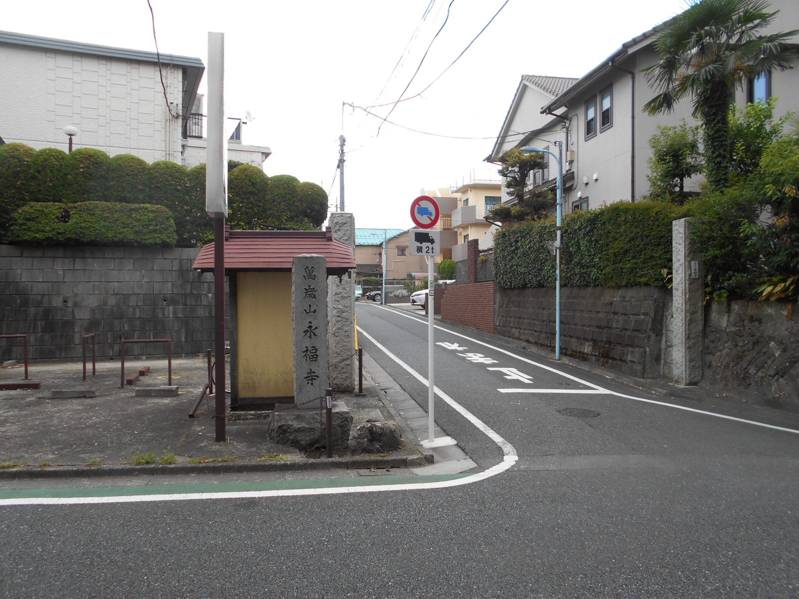 永福寺とは、もしかして永福町駅と町名の由来になったお寺かも、と思って歩いていると、道に「永福寺」と書かれた石柱が…。