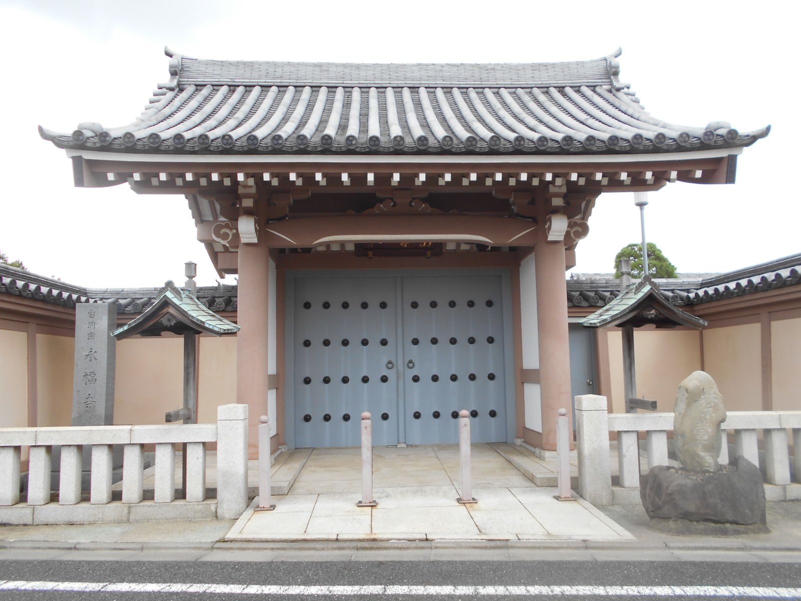 当初のウォーキングコースから外れますが、足を延ばしてみることにします。そこからお寺までは住宅街の道をかなり歩きました。おそらく、石柱から現在のお寺までの広大なスペースは、かつての境内だったのでしょうね。門や本堂はコンクリート造りですが、駅名の由来になったお寺の威厳は感じられました。