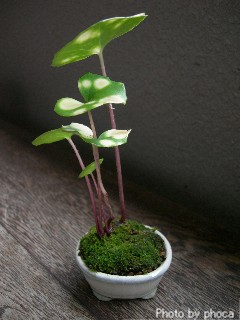 鬱陶しい天気が続きますね。雨だけならまだしも、さらに蒸し暑い。。。ということで、涼しげな斑入り植物を。ホタルツワブキです。たぶんホタルでいいとおもう。。。斑の数や入り方で名前が変わったりするらしいので、もしかしたら星斑かも。ツワブキとしか書いてなかった。。。結構前からほしいなと思っていたので、200円の格安販売に飛びついてしまいました。・・・気をつけなくては、最近ベランダが飽和状態!数えてみたら、40種類もの植物を手がけていました。ようこそ、41種め。。。少し大きめのポットに入っていたので、びよーんと伸びてしまっていますが、鉢をしめると小さくなる性質があるらしいので、植え替えてしまいました。適期ははずし気味。根も捌いたのですが、さて、吉とでるか凶と出るか?