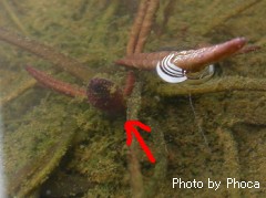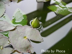 BEE.さんからいただいた、熱帯睡蓮のティナに花芽がつきました。矢印の先ですがわかりますかね?葉っぱとは違う丸っこい芽が出ています。ばんざーい!温帯睡蓮にはない青い花が咲きます。まだまだ小さなつぼみで、咲くのはずいぶん先だろうけど楽しみ!温帯睡蓮と違って、水面から少し上に花をつけるのだそうです。これはスコールなどで急に水位が上がっても花が沈まないための適応なのだとか。なるほど~問題は花期が三日と短く、しかも昼しか咲かないこと。。。有給取ろうかな(バキ)