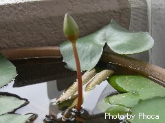 ティナの花芽が伸びてきました!最初の花芽を確認したのが6月末。そのときの花芽は次々と水の中で腐ってしまいました(泣)。3つか4つはだめにしてしまったでしょうか・・・今年は無理かもとも思っていましたが、やっと伸びてきました!いよっ!待ってました!先のほうからは少しだけ青いのも見えています。明日には咲くかな~。楽しみです!