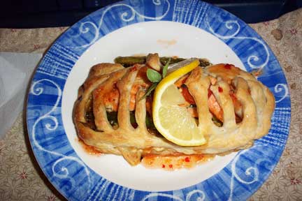 はじめまして。mproseです。ダンナは、英国人で料理人です。彼のハンドルネームは、PJ。彼の日々の日記とお料理レシピをマイペースでアップデートして行きますので、お付き合いください。日記更新は、不定期で(多分1週間に一回!?)のペースを予定しています。今後ともよろしくです。(サーモンのパイ包みチリソースかけ)