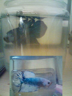転覆病のベタ、約4匹…。マツカサ予備軍約4匹。