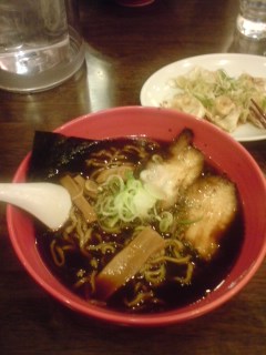 お昼に富山の 麺屋いろは の有名な黒ラーメン、一口餃子