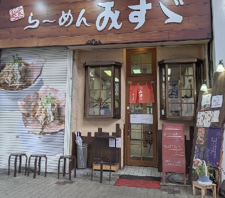 店員さんは女性が多く見えたので、盛り付けも女性らしいし、どんぶりの下にお皿を置くのも細やかな気遣いだし、てっきりみすゞさんという女性が経営する女性中心お店かと思ったら、そうでもなさそうです。しゅんWebさん、隠密麺喰い師の備忘録さんのブログを拝見すると、洋品店から業種変更して一からラーメン作りを学び繁盛店に育てたご主人の苦労が分かります。