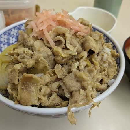写真の玉子と味噌汁は牛皿とは別メニューである。