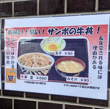 アメリカのBSE問題を受けて日本政府が行ったアメリカ牛肉輸入規制の影響で、2004年の2月より日本の主な牛丼チェーン店で牛丼の供給がストップされた時期(詳細は牛丼屋におけるBSEの影響を参照)に、ニフティのデイリーポータルZ[8]の専属ライターである林雄司によって『牛丼はまだここで食える』というタイトルの記事が特集された際、取材を受けた7店舗の中にサンボが選ばれ、2004年2月21日の時点で同店が牛丼を提供し続けていた事が紹介されている[9]。また、電撃ネットワークのギュウゾウが自らのオフィシャルページにおいて写真入りのレビューを公開した[10]。
