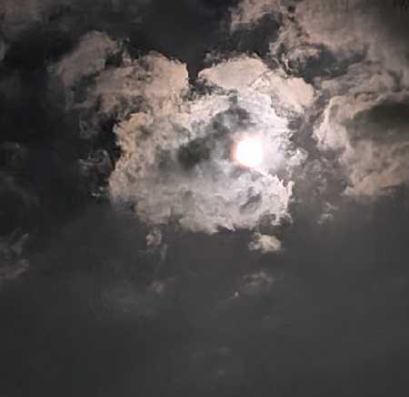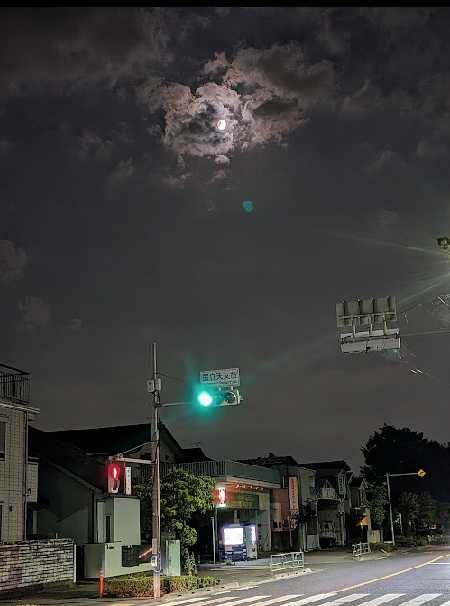 当日は曇りで、肉眼での望遠鏡からの星観察はできないのでどうしようかと思いましたが、野外観察の時、雲間から見える月が面白くて行ってよかったと思います。当日は満月の1日前で明るい月でした。
