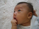 ちゃぷちゃぷちゃぷ...なんの音かと思ってハルをみるとおててを一生懸命 なめているあら そんなこと 始めたのねーじっと観察していると...親指をお口に入れてしゃぶりたいんだけどおててがいつもグーだから 上手に親指だけは入らなくて親指のあたりを 全体的になめてる感じ毎日毎日 何か新しいことができるようになるんだね「ちゃぷちゃぷちゃぷ...おいしいな!」