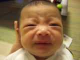 お風呂の後の水分補給 みなさんはどうしてますか?ハルにはいつもおっぱいをあげている前はお白湯をあげようと試みていたが 飲まないのだ哺乳瓶をくわえたまま お口を動かさない1ヶ月検診の時に 水分補給は麦茶もOKということだったので それから2回ほど あげてみたこれも 飲まないしかも お白湯の時と違って すごーくイヤな顔をするなので 最近全然試してなかったのだが今日久々に 再挑戦!今日は飲むかな~??「ママ~ まっずーい!」...はいはい じゃあ おっぱいね...