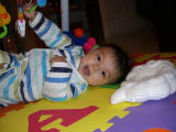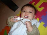今日 7ヶ月を迎えたハル今月は 7ヶ月なハルの様子からスタート!○ずりばいができるように! 結構なスピードでどこへでもゴー!○「つかまらせ」立ちが大好き! ローテーブルに立たせると大喜び○四つんばいを始めました! ハイハイへの準備でしょうか?○飛行機ぶーんは相変わらず! ブームはまだ去らないようです○おすわりはまだちょっと苦手! 1人で座れるのはまだ数秒○夜中はやっぱり3時間でお目覚め! すぐ寝てくれるのが救いです○離乳食はおおむね順調! 早くも好き嫌いがあるようです○うんちは平均2日に1回! 離乳食を始めて変わりました恒例の身体測定...実は計れていないのだなぜなら...ハル インフルエンザにかかる (涙)母 かなり ショック...昨日 私が風邪をひいたらしく鼻水と微熱があったハルは一緒に鼻がぐすぐすいいはじめたのだが いたって元気しかし 夜中目を覚ました時に体を触ると 熱い!熱を計ると37.7度!ハル 初めての発熱であるそれから熱はガンガン上がり 朝には38.5度に今日はかかりつけの小児科で 7ヶ月検診の予約を入れていたのだが急遽診察に予定を変更 朝から病院に行ってきた「お母さんのが移ったんでしょう 念のためにインフルエンザの検査をしておきましょう」結果 陽性ガーン(涙)どうやら 私が移してしまったみたいだ私は予防接種を受けているので 症状がとても軽いだが 無防備なハルは モロに症状がでてしまったのだタミフルは1歳からしか処方しないということで代わりに漢方薬と解熱剤をもらったうちに帰ってきてからはさらに熱が上がりがっつり39.3度をマーク!鼻と咳がひどく 声もガラガラにかれてしまいグッタリして寝てばかりいる夕方まで昼寝をし 解熱剤を使ったら少し熱は下がり遊べるくらいの元気を取り戻した高熱ながらもおっぱいはちゃんと飲んでくれるのでとりあえずはよかった下痢もしているので とにかく脱水しないように気をつけないとそれにしても7ヶ月間 風邪一つひかずにきたのに 初めての病気がインフルエンザどうなの これ早くよくなりますように病人部屋