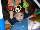 5ヶ月になった頃からだろうかそれまでは 一度寝たら8~10時間はぐっすりと寝ていたハルも夜中に2,3回 起きるようになった1時 (3時) 5時 というのが通常パターン辛いし もちろん起きないでほしいとは思うがすぐ添い乳をすると5分もあれば寝てくれるので楽な方なのだと思うところがここ2日間 3時に目をパチっと覚ますと...ニコニコと すごく遊ぶのだエラいご機嫌 そして 遊べと要求してくるのだ...え~っ!こんな時間に~っ!?カンベンしてくださいよ...おっぱいをあげようとしても 拒否「ぼくはねないの!これからあそぶの!はいママも!」布団を握ってブンブン振ったり私の手や服をつかんで しゃべりながら遊びだすハル~...ママにはムリだよ~...朝の3時に そのテンションにはついていけないよ~(涙)それでも1時間くらいは 仮死状態で付き合う母(記憶なし)気がすむと またおっぱいを飲みながら寝てくれるのだが...なんなのだろうか?昼間遊び足りないのか?え?あれ以上遊べと?もっとテンションをあげてこいと?...今日も3時に一緒に踊らないといけないかと思うと体力を温存しておかなくてはいけないと思う 母なのでした**************************「離乳食メモ」更新しました