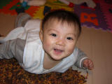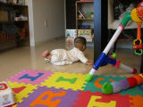 最近 ハルが長距離移動をすることを日記に書いた移動の方法は 寝返り+回転+寝返り返り の複合技...だと思っていたのだが...今日 お友達のレナちゃんとうちでお茶をしていたママたちは楽しくお話をしながらも 危ないことをしないようにベビーたちを横でずっと見ていたふと気づくと ハルがどんどん移動しているさっきまでレナちゃんのとなりにいたのが気づくとプレイマットからはみ出て キッチンの方にいるでもね?寝返りはしてないんですよーよーく見てみたら ちゃんとずりばいで移動をしていたのです!ハルの長距離移動シーンって 考えてみたら直接見たことはなくていつもスタート地点とゴール地点だけを 確認していたずりばいをしているところを見たことがないからずっと寝返りで移動しているものだと思っていたでも もしかしたら 違ったのかもちゃんと ずりばいで動いていたのかもしれないなぁ今日 初めて目撃できたということで ずりばい認定!(?)ハル よく頑張りましたー!...床掃除 手が抜けません(涙)「うんしょ!うんしょ!」**************************「成長アルバム」更新しました**************************「離乳食メモ」更新しました