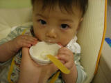 うちには それなりにおもちゃが揃っている木の車やにぎにぎ 音の出るやわらかいおもちゃもあるさらに今日は 新しく「しわくちゃボール」を出してあげたこれ 頂き物なのだが なかなかいいおもちゃ柔らかいからあたっても痛くないしスポンジのようになっているので握りつぶすこともできるはい ハル 新しいおもちゃだよ~!「ん?」 「あ!ぼくのすきなの!」 勝者: コージーコーナーの袋(\0-)敗者: しわくちゃボール(\3,000-)先日買ってあげた お風呂用のおもちゃこれはこれで大好評 喜んで遊んでくれるでも もっと好きなものがあるわけで...「ろぶすたー」 「あ!ぼくのすきなの!」 勝者: 手桶(\100-)敗者: ロブスター(\1,500-)こんなものでいいの?というものの方が 意外と人気が高いそんな安物好きなハルの遊び方の特徴とにかく1つのおもちゃに固執するいろいろ出して置いてあげても 1つだけでずーっと遊ぶのだ現在の1番人気はコレ大好きこれさえあればずーっとずーっとひたすら遊ぶお外に行く時は必需品1番人気はまともなものでよかったですコージーコーナーの袋も 手桶もちょっと外には持って行きづらいのでね**************************「離乳食メモ」更新しました