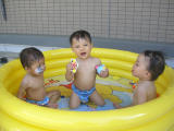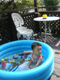 やっと梅雨も明け 夏らしい日が続くことを期待し我が家もビニールプールを購入したとてもお天気が良かったので早速今日 実家のデッキに設置してみたハル 初めての水遊び である「ママ~!きもちいいよ~!」お風呂で使っているおもちゃと手おけ(←大好き)と一緒に少し温めの水に入ったハル最初は少し緊張したのか プールの中でじっとしていたのだが次第にバシャバシャと楽しそうに遊びだした自分で出たり入ったりしながら ずいぶん長いこと水遊びをしたとっても気持ち良さそうで 母も一緒に入りたかった...今日は実家で遊んだのだが 購入したプールはうちのベランダにもちゃんと置けるサイズ今度はお友達も誘って みんなで水遊びしようね☆