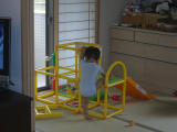 お誕生日に買ってもらった スポーツジム最初は バスケットゴールにボールを入れるだけだったのが最近 遊び方がめっきり激しくなってきた滑り台を登ったり降りたり は あっという間に卒業したため登るための階段は 何度つけても取り外されてしまう階段など使わずに えいやっ! と登るのだ「えいやっ!」その後は ジャングルジムとして 堪能バーを渡り歩いたり 上で飛び跳ねたり見ているほうはヒヤヒヤ「おーい!」いつの間にか こんなところに...まだロクに歩けない子の遊び方には 見えないわ**************************************保育園入園準備のため 小児科へ行って ○健康診断書を出してもらう ○おたふくかぜの予防接種を受ける ○虫刺されの薬をもらう(これはついで)と一気に用事を済ませてきた診断書・予防接種が自費なのでお会計がなんと9,000円!痛い出費となりましたーちなみに 1歳になってから初めての小児科乳児医療費が無料の期間が終わってしまったため(1歳まで)いくらかかるかな...とドキドキしていたのだ診察代は虫刺され分だけなので 安かったのだが薬代もかかるし やっぱり無料はよかったなぁ1歳までなんて短すぎる!何とかしてもらいたいものだ