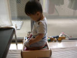 お誕生日に買ってもらった ハルの積木セット積木は動く台車に収納できるようになっている積木を出しては収納し 出しては収納し と正しいんだか間違ってるんだか な方法で遊ぶハルそして ひとしきりこれが終わると...「よいしょと」必ず 自分も収納するのだそういえば ハルったらタンスに入っていたりおもちゃ箱に入っていたり洗濯かごに入っていたり...収納好き なのでしょうか