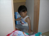 この間日記に書いた ハルの収納(?)好き積木の台車に乗っていたりタンスに入っていたりおもちゃ箱に入っていたり洗濯かごに入っていたり...そして 今回はコレ「よし ぴったり」押入れに in自分でふすまを開け おむつのストックを引っ張り出してどかし自分をぴったり収納ちなみに 意地悪をしてふすまを閉めると怒った顔で 中からバシっとふすまを開ける入るのは好きだけど 閉じ込められるのは 好きじゃないらしい