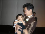 今日は ダンナの従弟の結婚式の日ハルと一緒に 3人で参列してきた場所はマンダリンオリエンタルホテル東京このホテルは初めて入ったのだが 雰囲気あるステキなホテルだった道中 ハルに服を汚されることを想定し母とハルはホテルで着替えることにしていたため豪華なホテルに ボロボロの普段着で到着ちょっと恥ずかしい思いをしながら 急いでお着替え結局ハルの服は 手持ちの黒いオーバーオールと白いポロシャツ 白い靴下で対応色々迷ったが 結局こんな感じが子供っぽくてよいかな とさて 披露宴中のハルの様子はというと意外とおりこうさんにしてくれて 予想外大暴れして 母はろくに食事もできないことを覚悟していたが光や音楽に忙しく反応し 色々な人に相手をしてもらい飽きずに過ごせたのがよかったのかもしれないちなみに 披露宴では多発する拍手ポイントみんなが拍手をする時は ハルも一緒に上手に拍手!ただ まわりが叩いているのをじっくり確認してからの拍手なので大体が静まった頃に ハルだけ「ぱちぱちぱち~」と1人で目立ってしまうのだったともあれ 何事もなく終わった初めての結婚式お偉いさんのスピーチ中に大騒ぎすることもなかったし下ろせ下ろせと暴れることもなかったし新婦の色内掛けを 汚い手で触ろうとしたところも阻止できたし新郎に 月齢にそぐわない体勢での抱っこもされたしよかったよかった「おめでとです」ちなみに 母はというといつもボロボロのらくちん着ばかり着ているので久々のまともな格好にすっかり疲れてしまい今日は何もせず もう寝てしまうことに決めたのだった