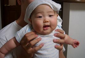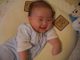 おはようございます。最近、こうたろうはまた夜中の授乳が再開し、今朝は3時起き。授乳してすぐ寝てくれればいいのですが、5時ごろまでしぶとく起きていて、気づけば夫が会社に行く時間に。今非常に眠たいです。ネットで見たのですが、4ヶ月頃に夜中の授乳がまた始まるのは、睡眠リズムの変化でよくあることなのだとか。あぁ、また寝不足の生活が始まるのか。しょうがないと思っても睡眠不足はなかなかつらいものですね。 ○母乳育児について私が非常に参考にしているHPは→「ここをクリック!」 乳腺炎もこれを参考に自力で治しました。・・・・・・・・・・・・・・・・・・・・・・・・・・・・・・・・・・・・・・・・・・・・・・・・・・・・・・・・・・・・・・・・・・・・・・・さて、昨日はこうたろう初の予防接種「BCG」でした。混んでると思ってかなり早めに行ったのですが、6ヶ月までの赤ちゃんが対象なためか、意外と少なくて拍子抜け。全部で20人位でした。こうたろうも最初はご機嫌で、他の赤ちゃんの手を握ったりして和やかムード。私は色んなお母さんと話したりして、情報をゲット。待つこと30分。だんだんとこうたろうのご機嫌に暗雲が。ウゲ!とかウゴゴゴ!という雄叫びを上げ始め、私にエルボをくらわし、ついには泣き始めるこうたろう。そんなにでかい声で泣くのはあなただけですよ。周りの赤ちゃんもびっくりな泣きっぷり。 ご機嫌だとこんなに笑うのに・・・。 せめて笑顔のこうたろうを載せて癒されよう。 「あはは!お母さん、顔が変! 僕、なんだかすごく嬉しいよ~」 やっと名前を呼ばれ、「こりゃ、注射されたらさぞかし大泣きするな」と思いつつ、戦々恐々とお医者さんの前に。すると、直前までぐずっていたのに、突然泣き止み、針のついたスタンプを腕に2回ギューギューされている間、キョトンとするこうたろう。「あれ?僕、なんか気持ちいいかも?」てな感じです。看護婦さんに「いい子ね~。我慢強いね~。」なんて言われましたが、それは違う気が。他の赤ちゃんが号泣する中、むしろご機嫌で無事にBCGスタンプ終了。腕が完全に乾くのを待ちつつ10分くらい経ってから、またぐずり、雄叫びを上げ、泣き始めたこうたろう君。「あなた、泣くところを間違えてないかい?」と突っ込みを入れ、周りのお母さんに笑われる私。一番目立った親子になってしまいました。まったく、大物なのか、小物なのか分かりません。こうたろうの泣くつぼは他の赤ちゃんとは違うみたいです。そんなこんなでなんとか、無事にこうたろう坊ちゃんの人生初の予防接種は終了した次第です。・・・・・・・・・・・・・・・・・・・・・・・・・・・・・・・・・・・・・・・・・・・・・・・・・・・・・・・・・・・・・そして私は会場で仲良くなったお母さんから、群馬は「子育て支援センター」という仕組みがあるのを知りました。それは、群馬の各保育園で毎日朝9時~5時まで部屋を開放し、保育士が2人ついて、色んな遊びや赤ちゃん体操を指導してくれたり、おもちゃで遊ばせてくれたり、育児相談にも乗ってくれるというもの。家から歩いて5分の保育園でもやっていることを知りました。「2ヶ月の赤ちゃんを連れて来ている人もいたよ」とのこと。こうたろうも家で遊ぶとすぐ飽きるようになってしまったので、早速行ってみようかと思っています。ちょっとドキドキですが。こういう情報は市報にも載っておらず、口コミで知るしかないのがつらいところですね。・・・・・・・・・・・・・・・・・・・・・・・・・・・・・・・・・・・・・・・・・・・・・・・・・・・・・・・・・・・・そんなこんなで、まだドスンドスンと足を上げるばかりで寝返りもできないこうたろう君。授乳も日中は3~4時間空きますが、まだ夜は2時間起き位になってしまいます。泣き声も叫び声もバカでかくなって、寝るまでのぐずり激しく、またまたかなり大変なことになってきましたが、「悪いこともいいことも長くは続かない」と信じて頑張りますね。ではでは。暑い毎日が始まりそうですが、おいしいジュースにきれいな氷でも入れてグビグビっと飲んで乗り切りたいですね。いい一日を!