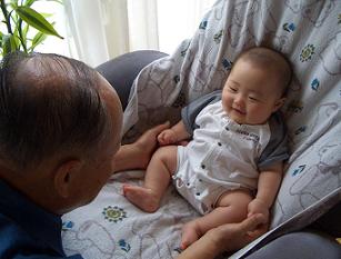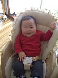 こんにちは。こんなにご無沙汰してしまってごめんなさい。3連休があったので、急に思い立って私の実家に帰ったり、地元の友達に会ったり、歯肉炎になって歯医者に行ったり、美容院に行ったり、またまた乳腺炎もどきになったり、と色々盛り沢山で、気づけばずっとパソコンを開いておりませんでした。実家は3ヶ月ぶりに帰ったのですが、両親は久々に会うこうたろうのデカベビーぶりにびっくり。姉の子供達とも会ったのですが、9ヶ月の甥っ子よりこうたろうの方が重くて姉も「ぎっしり詰まってる感じがするね。」とかなり驚いておりました。でも、ホントによくおしゃべりするようになったこうたろう君。お祖父ちゃんと毎日、長い時は20分位一生懸命話していて、皆で「この子は賢い。」と褒めまくり。相当おバカ一家でした。「3歳まではどの子もみんな天才児」とはよく言う話ですが、こうたろうも当分夢を見させてくれそうです。 おじいちゃんと嬉しそうに語るこうたろう課長↓ 「おじいちゃん、今日はこんなことがあったんだよ」私も髪をバッサリ切って、気分をリフレッシュ。こうたろうもにぎやかでずっと抱っこしてもらってご満悦。首も完全に座って、イスに座れるようになりました↓。実家はやっぱりありがたいもんだなと実感した次第です。次に帰るのは9月頃。その時には、地元以外の友人達にもこうたろうを連れて会いに行きたいなとしみじみと思っております。 イスに座って威張るこうたろう課長↓ 「お母さん、踊っておくれよ。」 そんなこうたろう君、人の姿が見えないと泣くようになってきてしまったため、ついに料理をしながらでもそばにいられる「ハイ&ローチェアー」を買いました!高さが5段階に調節できて、移動も楽々。テーブルも付いていて、食事もできるようになっています。こうたろうもまんざらでもない様子。これで少しは楽になるといいのですが。 ハイ&ローチェアー 既に目一杯の大きさで、はみ出しそう・・・。 「あれ、なんだか地面が動くよ」 ・・・・・・・・・・・・・・・・・・・・・・・・・・・・・・・・・・・・・・・・・・・・・・・・・・・・・・・・・・・・・・・・・そんなこんなで、今日はまたしても雨。梅雨前線真っ盛りですが、 洗濯物がたまるのにもメゲズ、 乳が詰まるのにもメゲズ、 眠くて大泣きするという理不尽さにもメゲズ、頑張りますね。ちょっと喉が腫れて痛いのですが、皆さんも風邪にはくれぐれも気をつけて♪ではでは!