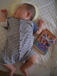 こんにちは。最近めっきり秋らしくなってまいりました。気温は高くてもカラッとしていて、嬉しい限り。冬はもうすぐそこでしょうか。最近毎日夕方こうたろうと30分~50分位散歩に出ているのですが、すすきや稲の穂や、鈴虫の声を聞くたびに「赤とんぼ」を鼻歌で歌って小学生やおじいちゃんに声をかけられたりしている私です。 ◇散歩中出会った巨大なすすき→・・・・・・・・・・・・・・・・・・・・・・・・・・・・・・・・・・・・・・・・・・・・・・・・・・・・・・・・・・・ 寝返りでたそがれるこうたろう課長 「明日に向かって撃て」さて、こうたろうも5ヵ月を過ぎ、夜中の寝返りは相変らずで、寝不足続きなのですが、この間はすごかった。その日は朝から割とぐずり気味で、夫が帰った時には私は既に疲労困憊。夕飯を食べ、私は夫にこうたろうをお願いして、布団に突っ伏していました。夫はこうたろうをひざに抱き、片手で「0~100までの素数を書いて数える」という地道な作業を楽しみ出した時から、それは始まりました。(夫はよく暇があると素数を数えたり虚数を考えたりしている。ワクワクするらしい。)突然、「びえーん!」と泣き出すこうたろう。夫がちょっとあやすと泣き止んだので、また素数を数え始めると、今度は「ウギャー!ブギャー」と体をよじって泣き叫び始めました。何が嫌なのか、これまでに無いほどの泣き叫びよう。顔は真っ赤で、全身汗だくで泣きまくりです。あやしてもダメ、オムツを替えてもダメ、ついにはパイパイ攻撃まで拒否。パイパイでもダメなんて、こんなことは今までありませんでした。別に熱があるというわけでもありません。どこか痛いという訳でもなさそう。これが夜泣きの始まりかと戦々恐々とする私達。延々1時間以上ずっと泣き続け、ちょっと治まっても自分の嗚咽で更に泣くという悪循環。ネットで赤ちゃんの泣きやませ方を検索し、色々試したり、おしゃぶり攻撃も、外の散歩も効かず、ついにはショック療法で、お風呂に入れてみよう!と入れてみましたが、効果は最悪。泣き叫びは最高潮へ。打つ手なしで途方に暮れてしまいました。結局夜8時半頃~12時過ぎまで3時間半。交代で抱っこしつつ、策も尽き果て、こんなにエネルギーがあるのね、きっとこうたろう自身も泣き止み方が分からないのね、と2人して遠い目になった頃、とうとう、パワーを使い果たしたのか、しゃくりあげながら、眠りについたこうたろう。いやぁ、すごかった。長かった。永久に泣き止まなかったらどうしようかと思いました。夜泣きの始まりかとびくびくしていましたが、次の日は何事もなくすやすや。これはきっと「素数」が嫌だったに違いありません。 最近は横になって眠るこうたろう課長 「素数なんて嫌いさ。」この日は名づけて「素数の悪夢」と呼ぶことにして、夫にはこうたろうの前で素数を数えるのを禁止した私です。・・・・・・・・・・・・・・・・・・・・・・・・・・・・・・・・・・・・・・・・・・・・・・・・・・・・・・・・・・・・・・・・・・・・そんなこんなで、こんな日もあるのだなと思いつつ、夜泣きは6割の赤ちゃんがするらしいので、今からとてもびびっています。少なくともまだハイハイはしないでおくれよと願う今日この頃でありました。今日もこんな話ですみません・・・。散歩の話題にしたかったのですが、あんまりすごかったので、つい書いてしまいました。皆さんも素数には気をつけて。ではでは。