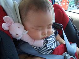 こんばんは。今日は夫の帰りが遅いので、こうたろうが寝てから久々の更新です。最近は子育て支援センターに通ったり、三種混合の注射があったり、こうたろうの寝る時間が減ったり、毎日夕方、涼しくなってから、なるべく散歩に出るようにしたりでなかなかブログを書く暇がなくなってまいりました。でも、1週間に1日でもできる限り更新していくので、見捨てずに来てくださいね。・・・・・・・・・・・・・・・・・・・・・・・・・・・・・・・・・・・・・・・・・・・・・・・・・・・・・・・・・・・・・・さて、日曜は夫の思いつきで、ロングロングドライブに行ってまいりました。軽井沢あたりまで行こうかと言ってでかけたのに、私とこうたろうが車で爆睡してしまったのを見て、軽井沢をぐんぐん越えて、そのまま高速を突っ走った夫。群馬から長野県を縦断して、気づけば妙高高原の方まで到達していました。(夫は更に「海が見たい」などと言い出し、北陸まで行こうとしたのを制した私。 とてもじゃないけど日帰りできません。)途中何度も母乳休憩や食事休憩を入れたりして、往復9時間。こうたろう初のロングロングドライブです。 久々の遠出でウキウキしたこうたろうと私 「僕達は爆睡したから元気一杯さ!」 こうたろうは行きはウキウキしていたのですが、さすがに帰りは疲れたのか、最後の30分は号泣。やっぱりこうたろうはまだまだ5時間以上のドライブは難しいようです。 こうたろうを肩車して目立つ夫 「わーい!高いぞ!空気がうまいな。」 ・・・・・・・・・・・・・・・・・・・・・・・・・・・・・・・・・・・・・・・・・・・・・・・・・・そんなこうたろうもついに5ヶ月。最近は寝返りができるようになりました。初めて1人でできるようになったのを見たときは、「おー!自分の意思で1人で大胆に動いてる~!」となんだか感動しました。大人の寝返りとは随分違い、まず、両足を横にして、腕とお腹の力でぐるんと自分を持ち上げる。たかが寝返りですが、これがなかなか見ごたえがあります。(今は寝返る度に一々拍手して褒めまくる両親。最初のうちだけかな。)でも、まだ戻ることができず、寝返りしては1人で突っ伏してうめき、泣いて助けを求めます。しかもこれが夜中、寝ぼけながらガンガン寝返って、うめくので、こちらはその度に起きなくてはならず、とほほです。お座りも両手を前に付けば5秒~7秒位は1人できるようになってきました。赤ちゃんの成長はホントに早いなと実感。 お座りしてかなり得意気なこうたろう坊ちゃん 「えへへ。僕、1人で座れるもんね。」・・・・・・・・・・・・・・・・・・・・・・・・・・・・・・・・・・・・・・・・・・・・・・・・・・・・・・・・・・・・そんなこんなで、更に表情豊かになり、何で泣いているのかだいぶ分かるようになった今日この頃。体重は約9キロに到達してしまい、離乳食も始まり、色々大変なことも多いですが、夏も終わりに近づいてきて、これからもっと散歩が楽しくなる季節。こうたろうと色んなことを楽しみながら、私も一緒に成長したいなとしみじみ思う、残暑の夜でした。書きたいことだらけで、なんだかまた長くなってしまいましたが、今日はこの辺で。ではでは。