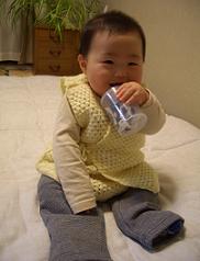 僕、またまた大きくなったよ。こんばんは。すっかりご無沙汰してしまってごめんなさい。毎日、家事やらこうたろうのお世話やらに追われたり、色んなこともあってたりして、何から書けばよいのやらですが、こうたろう課長も、もう7ヶ月後半になりました。気づけば11月も半ば。早いものですね~。寒い日も増え、こたつも登場し、もう冬間近。こうたろうは、ここ何週間で横幅もまたまた成長し、ハイハイも格段に早くなりました。もう大人の歩く速さ並みです。 えへへ、今日はどこに行こうかな。 よーし、押入れに突撃だ! 気づくと押入れの中などに突進してもがいてます。ちなみに持ってるおもちゃは綿棒ケースに紐をinしたもの。日用品にしか興味が向きません。このちゃんちゃんこは私が妊娠中に編んだものなのですが、産まれて2ヶ月の頃に着せた時は、こんな感じでした↓。 こんなに小さかったのね~。 って既に大きいかな。 いやはや、半年で随分成長したものです。家中を探検しているのですが、一番坊ちゃんが惹かれるものが、「お酒のビン置き場」。まっしぐらにそこに向かうので、目が離せません。夫の血を間違いなく受け継いでいると実感。でも、どうして行って欲しくないところばかりに突進するのだろうか。 ビールの空き缶が大好きな坊ちゃん。 ビールはやっぱりギネスだね。 この一杯がたまらない~。 後追いも激しくなり、私の姿が見えなくなると必死で追っかけてきます。この間は、熟睡したと思って、その隙にシャワーを浴びていたら、号泣する声が。慌てて外に出たら、廊下まで泣きながら到達していました。バスタオル一枚で抱きかかえたものの、どうしてよいやら途方に暮れる私。うーん、毎日がエキサイティングです。そして、何故か車に乗るとうんをしたくなっちゃうたちの悪い坊ちゃん。しかも結構大量。人間に近づいてきたのか、においも立派なもので、笑っちゃうしかないのですが、なかなこれも大変でございます。本人はすっきりするらしく笑顔ではしゃぐのですが。何回車の中でオムツを替えたことか。とほほですね。 僕、何かしたかな~? でも、ハイハイをしだしてから、表情が更に豊かになって、笑顔も格段に増え見ているだけで面白くなってきました。 夫は帰宅するたびに、「うーん、どんどん可愛くなっちゃうな~」と毎日つぶやき、私は、「昨日より、今日のほうが可愛いよね~。」と毎日言う完璧なる親ばか夫婦になっています。 お父さんライオンとこうたろう お父さん、なんか変だよ。 ※かぶっているのは授乳クッションそんな課長も、練習の成果か、ストローで飲めるようになってきたり、お座りも完璧にマスターしたり、色々と日々成長しております。 ストロー練習中 相変らず夜は2時間おきで眠いし、相手もなかなか大変で、両親ともかなり疲労はたまっているのですが、子育ては気力と体力勝負!ということで、頑張りますね。・・・・・・・・・・・・・・・・・・・・・・・・・・・・・・・・・・・・・・・・・・・・・・・・・・・・・・・・・・・今日も親ばか日記ですみません。もっともっと色んなことを書きたかったのですが、こうたろう課長のレポートだけで終わってしまいました。とにもかくにも、風邪だけはひかないように注意して冬を迎えたいですね。また間が空いてしまったらごめんなさい。皆さんも残り少ない秋、おいしいものを食べて、体調にはくれぐれも気をつけて。ではでは。いい週末を。