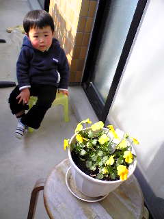 こんばんは。最近、10時半に寝るようになってしまったこうたろうですが、今日はお昼寝をしなかったせいか、なんと8時に寝てくれたので、久々にブログの更新です。さて、今日も暖かかったですね~。しかし、今年の花粉はすごいです。私は完全にマスクマンです。先週の日曜日に人生で初めて「群馬サファリパーク」に行ってきたのですが、その帰り道に「くしゃみ8連発」というすごい快挙を成し遂げ、完全に花粉との戦いがスタートしました。(そんなサファリの模様はまた後日。)あ~、春を楽しめないのがつらい。・・・・・・・・・・・・・・・・・・・・・・・・・・・・・・・・・・・・・・・・・・・・・・・・・・・・・・・さて、そんな坊ちゃんは、今日はベランダにいる「ビオラの植木鉢」をイスに座って2時間も眺めていました。こんなことはもちろん初めてです。最初は、私が洗濯物を中に入れる間、そばでわらわら遊んでいたのですが、その内、「お花、ビオラ、見て見て~!」と過剰に反応しだし、イスを持ってきて、座り込み、眺めること10分。最初は私も「きれいだね~。こうたろうのお花だよ~。」などと言っていたのですが、さすがにしびれを切らして、無理矢理家の中に入れると、「お花、見る~!!お母さんバイバイ~!!」とすごい勢いでのけぞって号泣しだしました。私もあきらめて、「じゃあ、1人で見てていいよ。」と1人でイスに座らせると、ぴたりと泣きやみ、私に「バイバイ、あっち行って」と手を振るこうたろう。天気もいいので、しばらく放っておいたのですが、窓に映っている自分の影に手を振ってみたり、独り言を言ってみたり、なんだか1人で楽しそう。「これはもしや本当にお花と話しをしているのではないか」と疑ってしまうような光景でした。(でも、わざと咳をしてみたり、私にそれとなく自分をアピールする坊ちゃん。) お花見をする坊ちゃん。携帯で激写↓ 春は花見だよね。僕も意地で眺めるんだ。結局、その後も、何回か、無理矢理部屋の中に入れては号泣する、を繰り返し、もう、半分以上、意固地になっていたこうたろう君だったのですが、夫からの電話で「中に入るんだよ」と言われたことで、入るきっかけをつかんだらしく、なんとか家の中に入った坊ちゃんでした。お父さん、ありがとう。でも、なんであんなにお花を見たがったのだろう。「もしかして、まだ1歳だし、本当に花と話しができたりして。」な~んて、勝手に想像する私。・・・・・・・・・・・・・・・・・・・・・・・・・・・・・・・・・・・・・・・・・・・・・・・・・・・・・・・・想像と言えば、私は小学校の頃、童話作家の「佐藤さとる」の本が大好きでした。コロボックルのお話しで有名ですね。「佐藤さとるファンタジー全集・全12巻」を図書館で借りて1人でこっそり読破したほど。 ↑佐藤さとるファンタジー全集 「コロボックルは非常に動きがすばやいので、普通は見られないが、 動体視力がものすごく優れている場合に限り、人間でも見られることがある」ことを知り、密かに動体視力を鍛えようと努力したことも。(←ちょっとアホ)コロボックルの話しも面白いですが、それ以外の話もとても面白くてどんどんのめりこんだ覚えがあります。動物や物や自然との関わりあいの中での、普通の生活に潜む不思議な出来事が、とても新鮮で、自分の身の回りでも起こっているようで、ワクワクドキドキしました。私の想像力はこの全集で鍛えられたような気がします。(挿絵も独特で素敵です。)でも、年を取ると、現実ばかりに目を向けて、想像力は退化する一方。今日のこうたろうは、そんな想像力を呼び起こさせてくれるような姿でございました。こうたろうもいつか読んでくれるかな。・・・・・・・・・・・・・・・・・・・・・・・・・・・・・・・・・・・・・・・・・・・・・・・・・・・・・・・・・・・・・・・・・・・そうそう、童話と言えば、私の中で、今一番の一押しが「浜田廣介(はまだひろすけ)童話集」です↓。「泣いた赤鬼」が最も有名ですが、それ以外にも色んな童話を書いています。夫が買ってきて、読んだのですが、これがなんだか、どのお話しもとにかくせつない。とつとつと心に語ってくる文体といい、話の流れといい、せつないの一言につきます。出てくるもの達が、みんな誰かを思いやっています。大げさなことは何も書いていないのですが、心にじーんと染みてきます。こんなにせつなくて優しい文章を書ける浜田さんて偉大だな、と改めて思いました。 「泣いた赤鬼」の心の優しい赤鬼が、人間達に 自分の家に遊びに来て欲しくて書いた看板です↓。ココロノ ヤサシイ オニノウチデスドナタデモ オイデ クダサイオイシイ オカシガ ゴザイマスオチャモ ワカシテ ゴザイマスこれを夫婦で読んだ我が家は、しばらくの間、お茶を沸かした時、「オチャモ ワカシテ ゴザイマス」とカタカナで会話していました。こうたろうが分かる