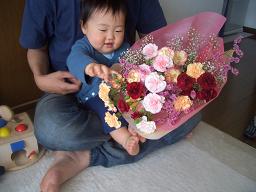 こんにちは。ご無沙汰してしまってすみません。すっかり暑くなりましたね。5月ってこんな陽気でしたっけ。緑はまぶしいですが、陽射しもまぶしすぎます。暑い熱い夏の予感。 →5月といえばこいのぼり~♪・・・・・・・・・・・・・・・・・・・・・・・・・・・・・・・・・・・・・・・・・さて、そんな中、こちらは激動の1ヶ月でございました。まず、前回、こうたろうが下痢気味だったとお伝えしたのですが、実はそれがノロウィルスだったらしく、私にうつってしまい、完全ノックアウト。こうたろうは元気だったのですが、私は上から下から、水も出てしまうほどのひどい症状で、でも、坊ちゃんのお世話はしなくてはならず、起き上がれないので、母乳でごまかしていたら、水分をどんどん取られ、気づけば頭がボー、目はチカチカ、喉は何を飲んでもカラッカラ。脱水症状を起こしてしまいました。夫に帰ってきてもらい、急遽病院へ。点滴を打ち、なんとか回復したものの、看護婦さんにあっさりと、「今日は母乳は上げないでくださいね。」と言われてしまい、おののく私達。夫も私も疲れ果ててヘロヘロなのに、ゴールデンウィーク前に期せずして一晩断乳することになってしまいました。こうたろうの泣き叫びようは、それはすごいものでした。私はぶっ倒れているので、夫が車に乗せたり、夜中に近所を歩いてみたり、あの手この手で4時間ほど。なんとか疲れ果てて寝てくれた坊ちゃん。これで、このまま断乳しちゃおうかとも思ったのですが、翌日は夫も会社に行き、まだ水も出てしまう状態で、起き上がれないヘロヘロの私が、こうたろうのパイパイくれパワーに勝てるはずもなく、あえなく、断乳を断念。また様子をみて1ヶ月後位に再チャレンジしようということになりました。その後、坊ちゃんは完全に疑心暗鬼に陥り、昼間はほとんど欲しがらなかったパイパイを、頻繁に欲しがるように。そして、ちょっとでもあげないそぶりを見せると号泣する日々が続きました。断乳に失敗するとこういうことになるのね~。と遠い目になる私。とにもかくにもどの本にも書いてあるように、断乳は「母子ともに健康で、気分が安定している時」に決行するべきですね。皆さんもくれぐれもお気をつけください。・・・・・・・・・・・・・・・・・・・・・・・・・・・・・・・・・・・・・・・・・・・・・・・・・・・・・・・・・その後、まんまと夫にもノロウィルスはうつり(それでも会社に行く夫)、ゴールデンウィークは夫の両親にこうたろうを見てもらいつつ、なんとか乗り切り、結局、家族全員復活したのは、5月半ば。そんな状況だったのですが、嬉しいこともありました。去年に続き、夫が母の日に花束をこっそり用意してくれていて、プレゼントしてくれましたのです!(私の母の分まで買っておいてくれました。すごいぞ、夫。) 「おかあしゃん、はい、どうぞ。 なんちゃって~。」去年は初めてもらったカーネーションの鉢植えにちょっと涙しましたが、今年は花束を坊ちゃんから渡してもらい、また感動。「私も母になったのね~。ダメダメ母さんだけど頑張るからね~。」と気持ちを新たにした次第です。ありがとう。・・・・・・・・・・・・・・・・・・・・・・・・・・・・・・・・・・・・・・・・・・・・・・・・・・・・・・・・・・・・そんなこんなで、なんとかみんな元気になり、こうたろうの疑心暗鬼もだいぶ晴れてきたので、約4ヶ月ぶりに、私は東京の実家に帰ってきました。 実家でいとこと遊ぶ坊ちゃん。 えへへ。缶ビールだよ。 おいしいんだよね~。ところが、少しのんびりしたのも束の間、今度は実家でこうたろうが、産まれて初めて40度近い高熱を出し、びっくり!今まで下痢や鼻かぜや中耳炎程度で、基本的には元気だった坊ちゃんが、ちょっとぐったりしてしまい、ものすごく心配になり、焦って病院へ。突発性発疹(通称:突発)だろうと言われました。これは赤ちゃんが全員なる病気で、3日ほど高熱が出て下がったあと、発疹が体中に出て、自然と治るという病気。大抵1歳位までにかかることが多いらしいのですが、まさか実家でかかるとは。結局、熱が下がって、元気になるまで実家にお世話になり、やっと群馬に帰って参りました。その後、発疹が出たので、突発だったのだろうと一安心。ようやく落ち着きを取り戻した我が家です。・・・・・・・・・・・・・・・・・・・・・・・・・・・・・・・・・・・・・・・・・・・・・・・・・・・・・・・・・・・・・・・・・・・いやはや、しかし毎回書いてますが、何はなくとも元気が一番ですね。とにかく、子供がいて体調を崩すと独身の時の50倍位大変です。皆さんも本当に気をつけてくださいね。・・・・・・・・・・・・・・・・・・・・・・・・・・・・・・・・・・・・・・・・・・そんな中、坊ちゃんは今日も家を探検して歩いています。最近、物をすぐに口に入れなくなり、