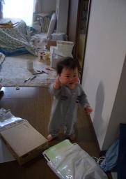 こんにちは。またまたご無沙汰してしまってすみません。秋晴れですね~。ウキウキする位空が高くて青いです。そんな私は昨日の昼間、TVドラマ「ドクターコトー」の再放送を見て号泣してました。・・・・・・・・・・・・・・・・・・・・・・・・・・・・・・・・・・・・・・・・・・・・・・・・・・・・・・・・・・・こうたろうは予防接種のポリオがあり、沢山の赤ちゃんに会って興奮したらしく、珍しくまだぐっすりお昼寝しています。三種混合は自分で病院に予約して個別に受けますが、ポリオは保健センターで集団で受けるので、久々に母親学級のお母さん達や支援センターで仲良くなったお母さん方と会って色々情報交換してまいりました。ポリオは前回、3ヶ月に1日足りずに会場で断られてしまい、リベンジです。なめて飲むワクチンなので、吐いてしまわないかとドキドキでしたが、こうたろうは、ウキウキなまま今回は何事もなく無事に終了。大人になったね、こうたろうどん。 大人になったこうたろう課長 でも、四段腹になってしまいました。 僕、泣かないもんね。 予防接種なんてへのかっぱさ。 首だってホントはあるんだよ。・・・・・・・・・・・・・・・・・・・・・・・・・・・・・・・・・・・・・・・・・・・・・・・・・・・・・・・・・・・・・・・・・・そんなこうたろう課長は、最近めきめき活動的になり、我が家を寝返りでぐるんぐるんしながら探索しています。この間は目を離した隙に、大好きなゴミ箱に到達し、中身を全部だして、密やかにゴミのティッシュを食べておりました。「あ~!やったな~!」と言うと、妙に嬉しそうに「見つかっちゃった!」と満面の笑みで喜びます。欲しいものがあると、少しずつ前にずりずりとして、手に入れるようになってきて、ハイハイも近いようす。うーん、恐ろしい。今日、お母さん方の間でも「ハイハイの恐怖」が話題になり、「植木鉢の土を食べていた」「携帯電話のリダイヤルボタンを押して友達に発信していた」「戸棚にしまっておいたビデオの黒いテープの部分を引っ張り出して喜んでいた」「土つきのじゃがいもを嬉しそうに丸かじりしてた」など出てくる出てくる。そんな恐怖を前々から周りからも聞いていたので、家族会議の結果、ハイハイが始まる前に、懸案だった「我が家の飾り棚」をついに売っ払ってしまいました!倒れてきたら恐いのと、写真などを飾るのがメインだったので、なくても大丈夫だし、家もすっきりするだろうということで。でも、私が頑張って必死で組み立てた愛着のある飾り棚。1年半の短い間でしたが、松ぼっくりやポストカードにカレンダー、こうたろうの写真や、花瓶など、色んなものを飾って楽しませてくれました。でも、こうたろうの安全には変えられない。 愛着たっぷりだった飾り棚 さようなら。 そして1年半ありがとう。 昨日、家にリサイクル業者の方が来て、持ち去って行きました。最初は「高くても3,000円ですね~」と言われたので、こうたろうをひしと抱きしめ、「え~、そんなに安いんですか!中の箱だけで5,000円したのに・・・。」と泣き声で訴え、ねばったら5,000円までUPしました。えへへ。言って見るもんですね。寂しいけど、部屋はホントにスッキリしました。 スッキリした我が家 まるで引越しするみたい。まだまだ植木鉢やゴミ箱など色々懸案事項はありますが、一番危険な物はなくなったので、ほっとしているところです。・・・・・・・・・・・・・・・・・・・・・・・・・・・・・・・・・・・・・・・・・・・・・・・・・・・・・・・・・・・・・・・・・・・・そんなこんなで、どんどん成長していくこうたろう坊ちゃん。果たして四段腹は解消されるのか。ハイハイは遅くてもいいから、今はもうちょっと早く、そして長く寝ておくれと切に願う秋の午後でした。(今の就寝時間はだいたい夜10時。そして2~3時間起きに起きる坊ちゃんです。)今日も長い文章を読んでいただき、ありがとうございます。最近間が空いてしまうことが多いですが、また来てくださいね。ではでは。いい午後を。