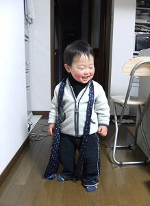 こんばんは。皆さんお元気ですか?最近寒いですね~。夫の会社はノロウィルスにやられて大変です。でも、今年は私もこうたろうもすこぶる元気で、不思議な位風邪を引きません。健康ってありがたいな。これも一日中とっくりを着ているせいかな。・・・・・・・・・・・・・・・・・・・・・・・・・・・・・・・・・・・・・・・・・・・・・・・・・・・・・・・・・・・・・・・・・・・・・・・・・・・・・・・さて、この1ヶ月は人生初めてづくしのことが多くて、あっという間です。まさしく「1月はいってしまう。2月は逃げてしまう。3月は去ってしまう」ですね。今月は色んな初めてのことがあったのですが、今日起こった初めての出来事が、あまりに嬉しかったので、思わずご報告してしまいます。それはすごくささいなことなのですが、こうたろうが初めて「ありがとう」と言葉で言ってくれたのです!!!今までも、何かしてもらった時、「ありがとうは?」と聞くと必ず頭は下げていたのですが、言葉で言ったことはありませんでした。今日初めて、私が夕飯を作り、テーブルにのせた時に、「おかあしゃん、あっりがっとう」と言ってくれたのです!しかも何回も。まるで「ご飯作ってくれてありがとう」と言ってくれたみたいで、本当に感激してしまい、思わず鼻を鳴らして抱きしめながら「こちらこそ、ありがとう」とちょっと泣いてしまいました。その喜び方があんまり激しかったせいか、ちょっと驚きつつも、その後も満面の笑みで、何度も「あっりがとう」と繰り返すこうたろう。私も何度もありがとうと言い返し、今思うと、端からみたら、「大げさだな~、どんな感激シーンだよ。」と突っ込みたくなるような光景でした。(夫にもすぐメールで伝えてみましたが、相当うらやましかったみたいです。)最近、魔の2歳児を目前に控え、5日前に「いやだ」と突然言えるようになってから、何でもとにかく「いやだ」と言ってみる坊ちゃんなのですが、今日は本当に嬉しかった。というか、自分がこんなに感動するとは思いませんでした。つたない言葉で一生懸命言う姿が、より感激を誘うんですよね(←超親バカ)。 「てへへ。僕、ありがとうって言えたよ。」 「ごちそうさま」や「おいしかったね~」が言えた時や、「赤、信号、止まれ」という2語文が初めて言えた時も嬉しかったのですが、「ありがとう」はやはりその何倍も感動しますね。その瞬間に立ち会えたことも嬉しかったな。こうたろうが大きくなって「母ちゃん、金くれよ」なんて言う年になったとしても、この日のことを思い出して、息子と向き合っていこうかなと思った私です。しかし「ありがとう」っていう言葉は本当に素敵な言葉だなと改めて思いました。・・・・・・・・・・・・・・・・・・・・・・・・・・・・・・・・・・・・・・・・・・・・・・・・・・・・・・・・・・・・・他にも人生初の「住宅ローン契約」に、「初の雪山ソリ遊び」、「上棟式」などなど初めての色んなことがありました。その模様は少しづつブログに書いていこうかなと思っています。そして、今月は私の誕生月でもありました。去年は草津に初家族旅行に行った思い出が。あれから1年かぁ。早いな。去年は夫に、「湯たんぽと足マッサージ機とシャンパンと雪」(わざわざ隠して宿まで運んでいた↓)というプレゼントをもらい、号泣した私ですが、今年はマッサージに行かせてもらい、人様に癒していただきました。(マッサージの人には体がカチコチでこのままではぎっくり腰になると脅されましたが。)友人からも素敵なメッセージをもらって感動し、年を取るのも悪くないかなと思ってきた私です。これからはアンチエイジングではなく、頭を使ったトンチエイジングを目指そうかな。みんな本当にありがとう。 こうたろうも年初めにありがとうと言えるようになったし、 今年は感謝の年を目指すことにしようと思います。(←単純な私。)そうそう、感謝と言えば、2月3日は私の父の古希(70歳)のお祝い会があります。お店を予約し、家族全員に集合して3姉妹で考えたプレゼントを渡す予定。父も70歳かぁ。一度心筋梗塞で倒れて死の淵さまよった人とは思えない程元気で、まだ週2日もテニスをしたり、会社に行ったりしている父ですが、ありがとうと言えるうちに、ちゃんと感謝を伝えないといけませんね。・・・・・・・・・・・・・・・・・・・・・・・・・・・・・・・・・・・・・・・・・・・・・・・・・・・・・・・・・・・・・・・・・・そんなこんなで、今日の感動を忘れぬうちにと思い、書いてしまったのですが、かなり独りよがりの文章になってしまいました。後で読んだら恥ずかしいかも。今日も読んでいただき、ありがとうございました。次回はなるべく早めにUPしたいと思います。それでは、皆さんも体調にはくれぐれも気をつけて。寒い時は首にタオルを巻いて寝るといいですよ。首を冷やすと風邪をひきます