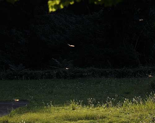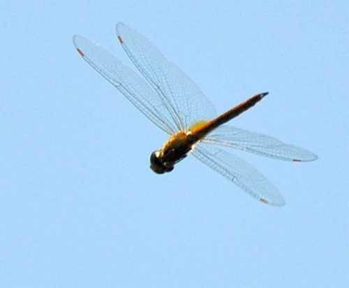 8月も後半、この頃、天気のよい時間には、ウスバキトンボが群れて飛び交うようすが見られます。1、2、3・・・。この写真だけで5匹が確認できます。 森陰の暗い部分を背景に、ウスバキトンボの1個体を撮ることができました。あまりよい状態ではありませんが・・・。《参照されたい過去記事》 2022.08.16 「下部川の流れの上に飛ぶトンボは」 2020.09.03 「とぶもの・・・ウスバキトンボの集団フライト」 2018.08.20 「ウスバキトンボ」