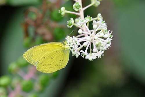 キチョウ・Aです。ヨウシュヤマゴボウの花に来ていました。 キチョウ・Bです。同じく少し離れたヨウシュヤマゴボウの花にいました。 そして、キチョウ・Cです。葉がしげっている影で休んでいました。 前後5分ほどの間に、3個体のキチョウを見ることができましたヽ(^。^)丿。
