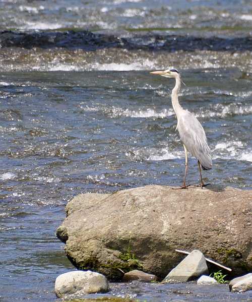 下部川の流れの中にある大石の上に、1羽のアオサギがしばらくの時間、少しも動くことなくたたずんでいました。これは、忍耐強くえものをさがしている状況だといわれています。 縮小率なくトリミングのみで、クローズアップしたものに、若干の画像補正を加えてみました。頭の後ろに見える冠羽は、夏のおしゃれ、のようです。
