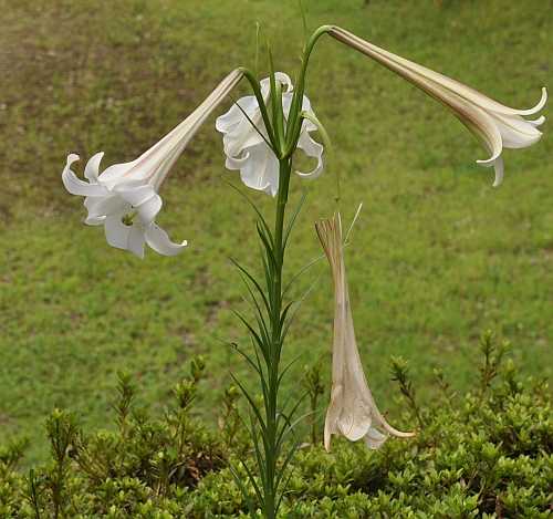 博物館の正面玄関前付近で、タカサゴユリが、この8月10日頃から咲いてきています。植えた植物というわけではないですが、毎年、この時期、楽しませてくれています。 白い百合の花は、清楚で、平和のしるし、とかいいたくなりますが、よく考えてみると、この世界、ほんとの平和とはいえない状況でありました。世界の隅々まで平和でいられる、そんな日がくればいいですね。 「終戦の日」に・・・。